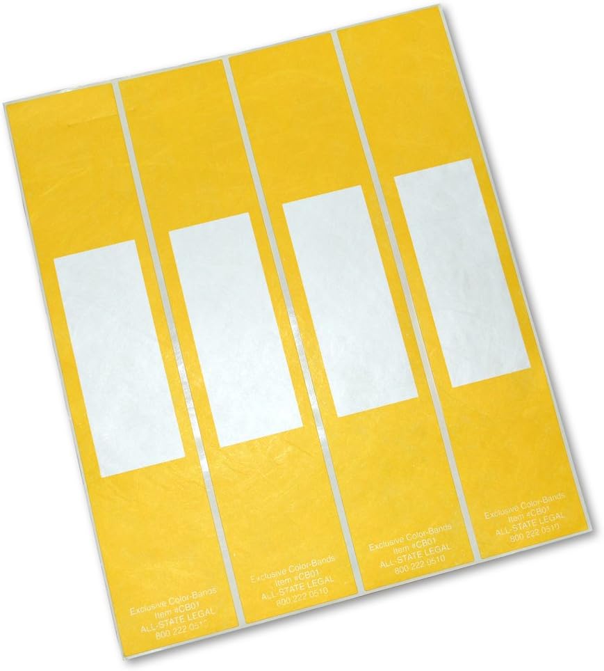 Color-Bands the original and favorite color coding, file identification and file handle for expandable pockets and wallet files. The easiest way to organize your file room and reduce file retrieval time by up to 60%. Tear resistant and hand friendly Tyvek bands attach to files creating a handle to ease the retrieval of files and reduce wear and tear on file gussets, increase the life of your files. Not laser compatible. 100 per package.