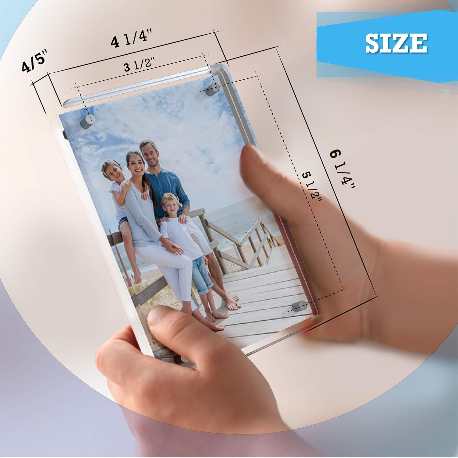 Display Your Fondest Memories with Crystal-Clear Detail Pictures tell the stories of our lives, our adventures, and our families, which is why we make picture frames that let the photo speaks for itself. These beautifully modern Go Beyond Hub Acrylic Photo Frames frameless picture frames with rounded corners offer a beautiful aesthetic that highlights the pictures with crisp detail in a smooth, frameless design. Designed to sit on your work desktop, living room bookshelf, or other personal area, make sharing your memories, keepsakes, and photos a more engaging experience. Product Details: High-Quality Acrylic Picture FramesClean Magnetic CornersAvailable in 1, 2, or 3-Frame SetsThick, Ultra-Clear Acrylic Plates (10mm)Smooth, Rounded CornersLarger Size: 4.25” x 6.25” Multipurpose Frameless Display These free-standing picture frames can be used for wedding or baby photos, vacation or graduation pictures, postcards from places you’ve visited, movie stubs or concert tickets, kid’s drawings, flat dry plants, business cards, and more. Single or Multiple Frame Options Go Beyond Hub acrylic picture frames come in single or multi-frame sets to help you decorate a small space or your entire home or office. Choose how many clear frames you’d like above and make it easier to share all your most important photos.